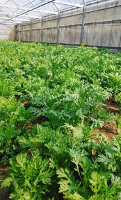 栽培過程で有機肥料のみを用い、無農薬で栽培しているため苦味も少なく、空芯菜、春菊ともに生でサラダで食べることをおすすめしています